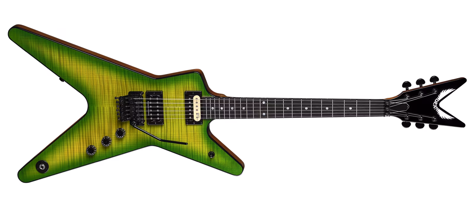 The Dean ML Floyd Flame Top looks as aggressive as it sounds. It’s meant to shred, and shred hard! The fretwork and overall construction are extremely precise on this, allowing you to achieve extremely low action for lightning-fast licks up and down the neck. At the same time, the V-shaped neck gives you a decent chunk of wood to hold onto that isn’t paper-thin. It sits perfectly in your left hand as you grip the neck for chords down low or lead lines up top.